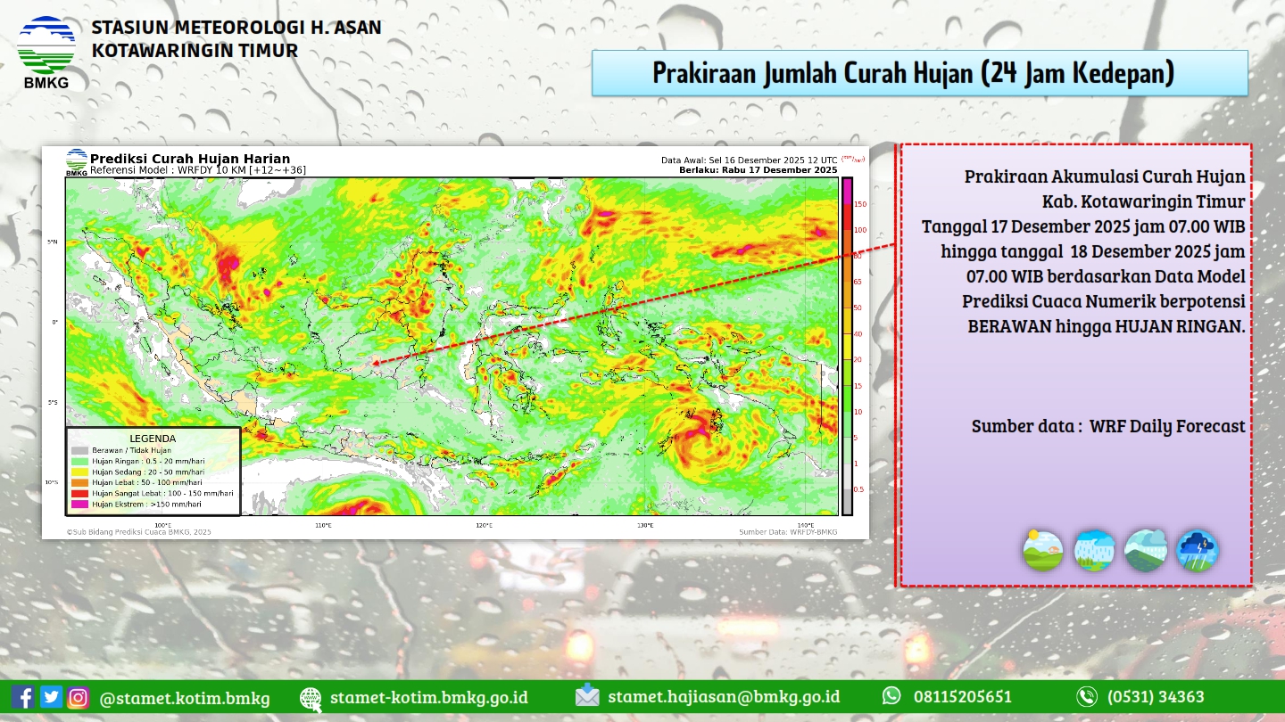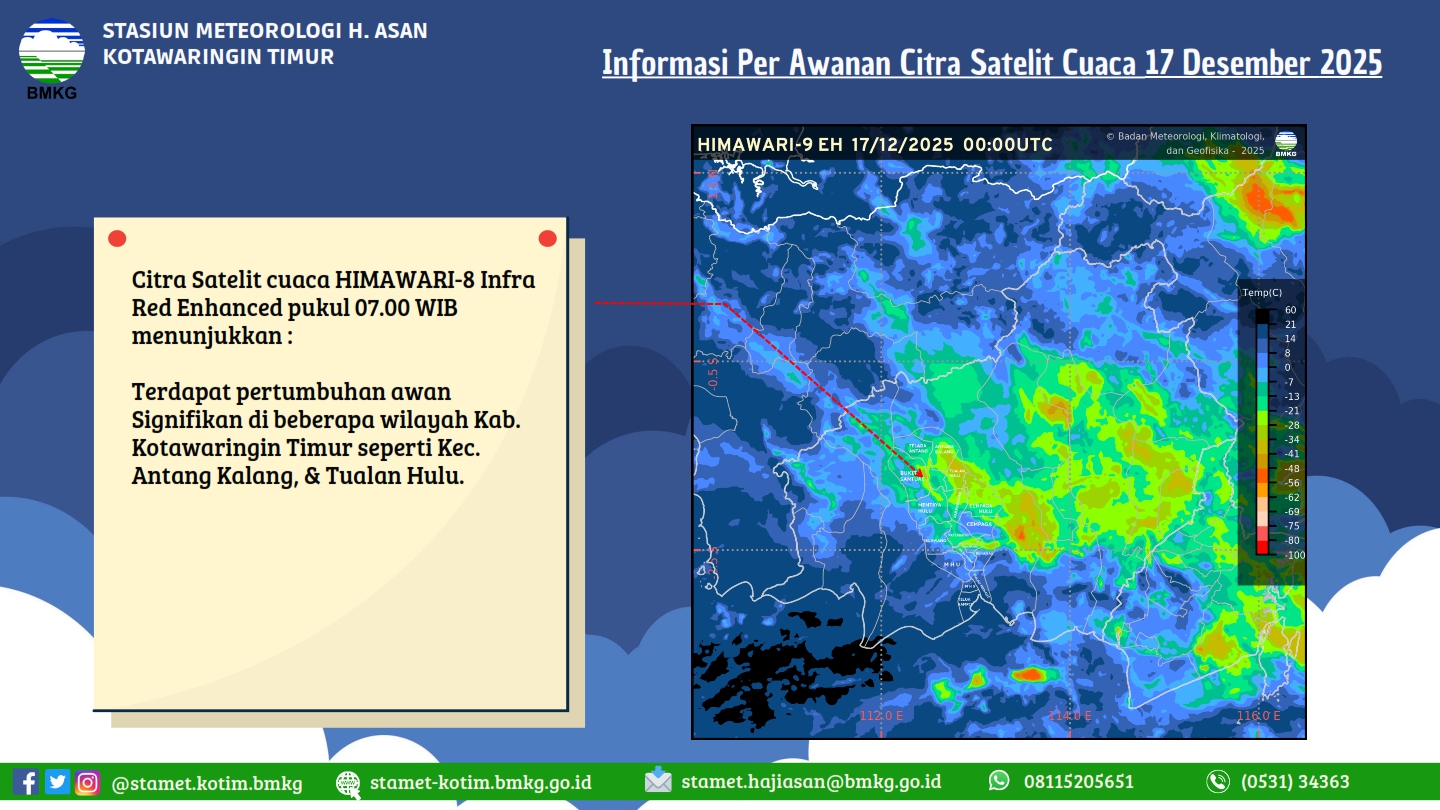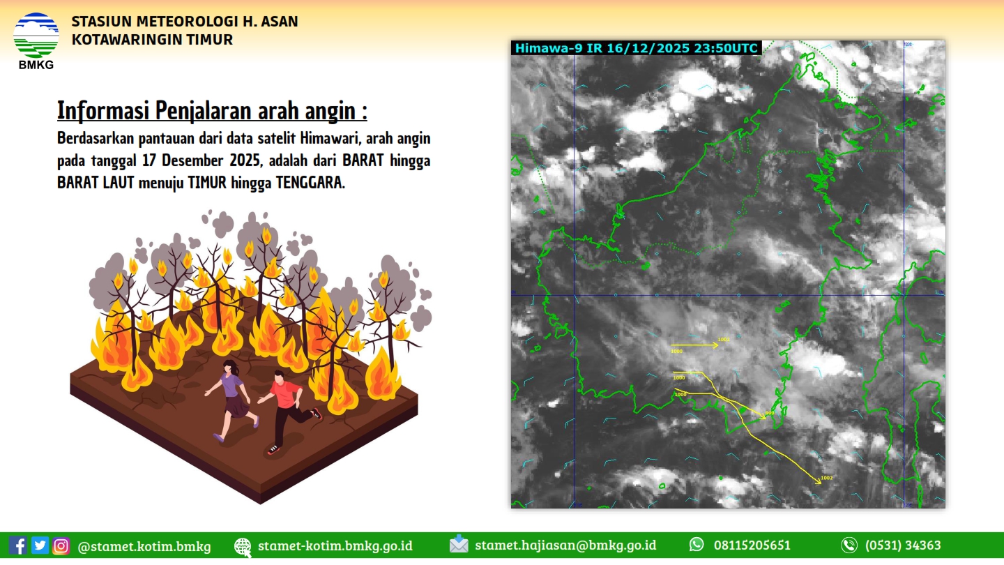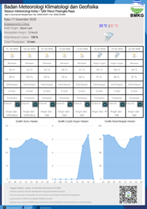 Layanan Meteorologi Prakiraan Cuaca Kab. Kotawaringin Timur HARI INI ESOK LUSA Informasi Per Awanan CITRA SATELIT KOTIM CITRA SATELIT SERUYAN Informasi Titik Panas KOTIMKOTIM SERUYANSERUYAN Potensi Kemudahan Terjadinya Kebakaran Informasi Penjalaran Arah Angin Prakiraan Jumlah Curah Hujan Prakiraan Gelombang Laut Jawa Prakiraan Potensi Banjir Dasarian Prakiraan Cuaca Wisata